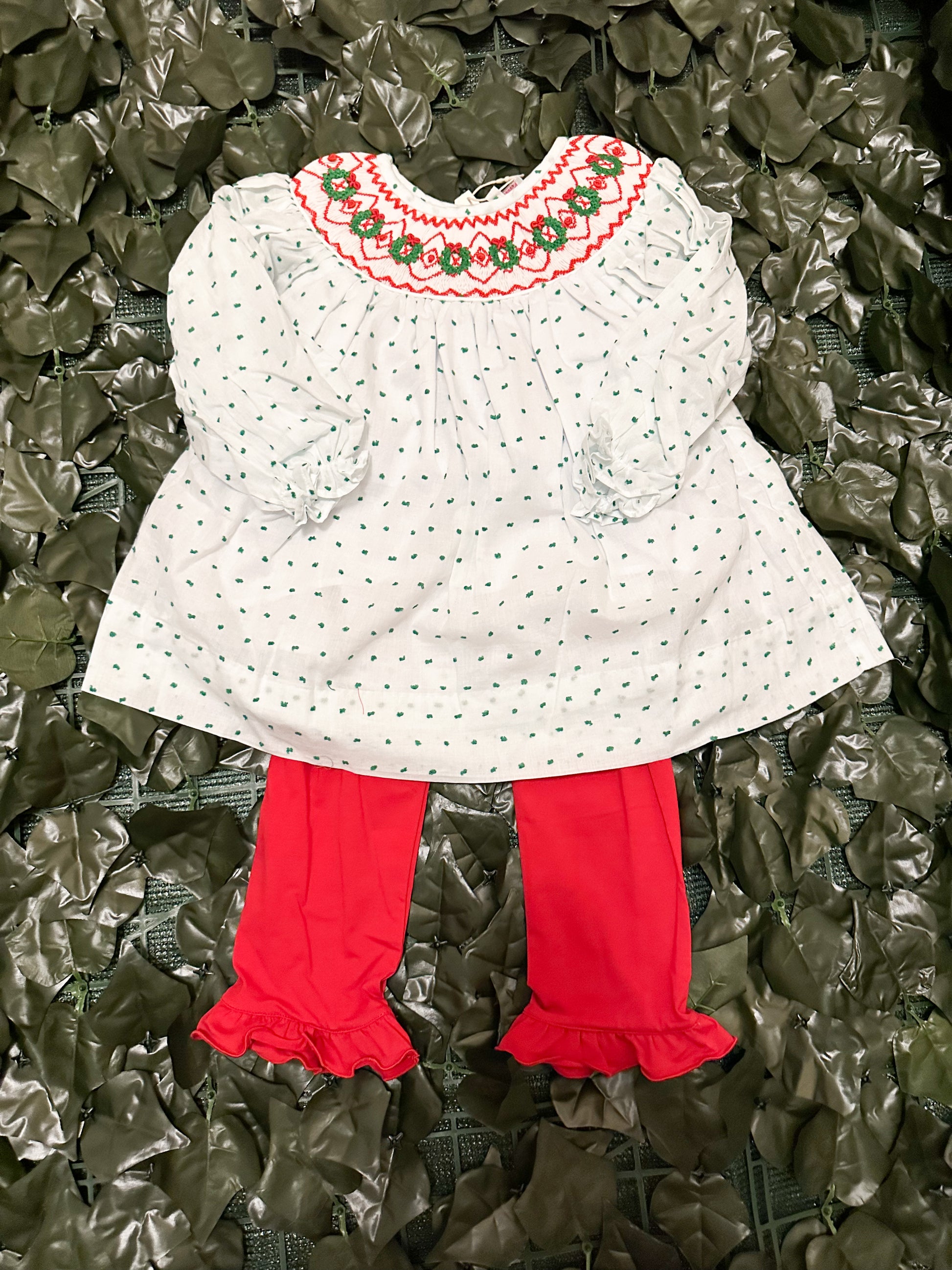 CHRISTMAS Collection: Swiss Dot Wreath Pants Set